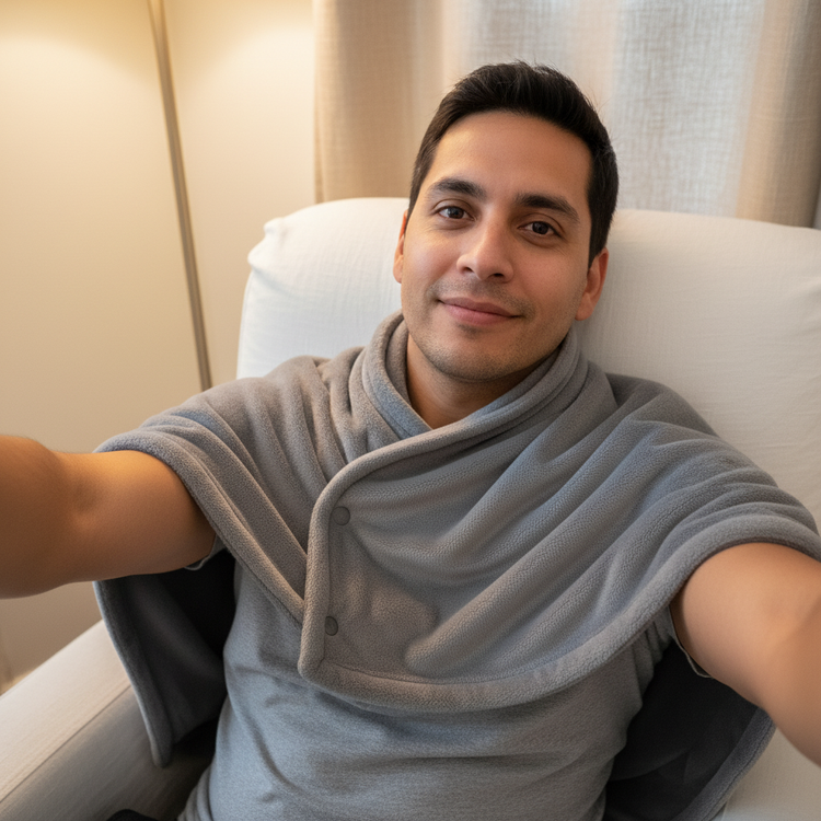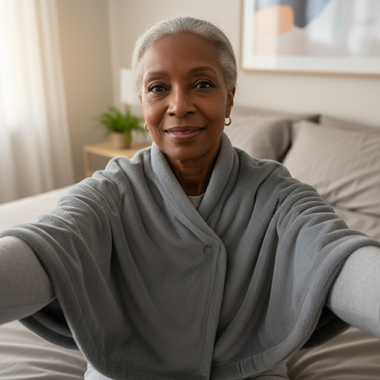 See SnugHeat™ in action during your daily routine. From chilly office days to cozy travel nights, our heated cloak fits every moment.